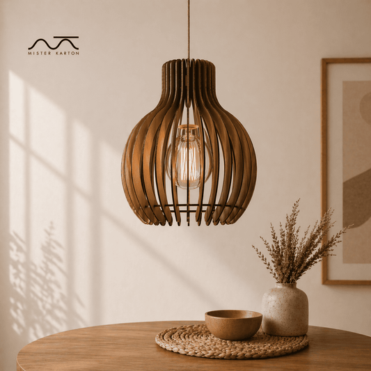 Lámparas de cartón certificado FSC que combinan un diseño sencillo y elegante con una iluminación cálida que conecta con tu espacio